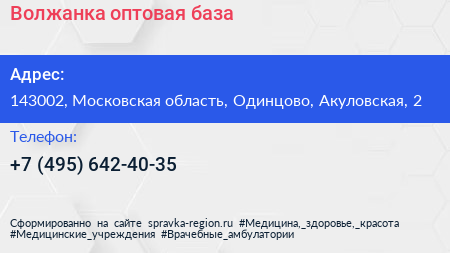 Волжанка, оптовая база по адресу 143002, Московская область, Одинцово, Акуловская, 2 в дальнейшем Организация, размещена в следующих категориях: