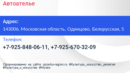 Автоателье по адресу 143006, Московская область, Одинцово, Белорусская, 5 в дальнейшем Организация, размещена в следующих категориях: