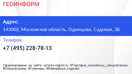 ГЕОИНФОРМ по адресу 143002, Московская область, Одинцово, Садовая, 3Б в дальнейшем Организация, размещена в следующих категориях: