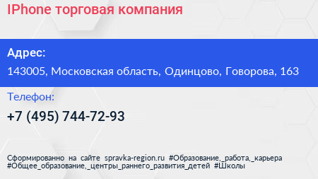 IPhone, торговая компания по адресу 143005, Московская область, Одинцово, Говорова, 163 в дальнейшем Организация, размещена в следующих категориях: