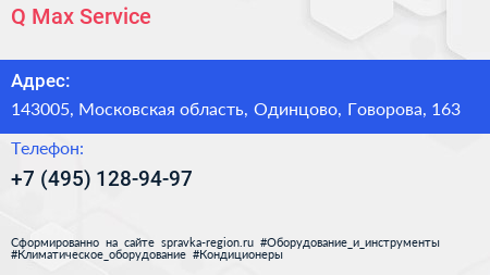 Q-Max Service по адресу 143005, Московская область, Одинцово, Говорова, 163 в дальнейшем Организация, размещена в следующих категориях: