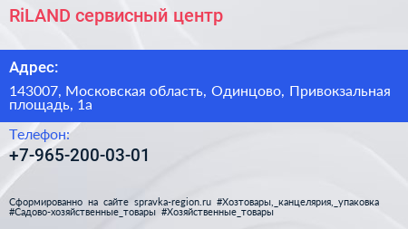 RiLAND, сервисный центр по адресу 143007, Московская область, Одинцово, Привокзальная площадь, 1а в дальнейшем Организация, размещена в следующих категориях: