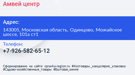 Амвей, центр по адресу 143005, Московская область, Одинцово, Можайское шоссе, 101а ст1 в дальнейшем Организация, размещена в следующих категориях: