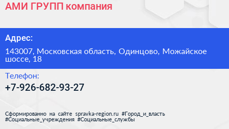АМИ-ГРУПП, компания по адресу 143007, Московская область, Одинцово, Можайское шоссе, 18 в дальнейшем Организация, размещена в следующих категориях:
