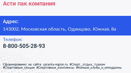 Асти-пак, компания по адресу 143002, Московская область, Одинцово, Южная, 8а в дальнейшем Организация, размещена в следующих категориях: