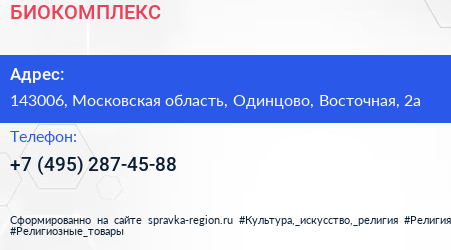 БИОКОМПЛЕКС по адресу 143006, Московская область, Одинцово, Восточная, 2а в дальнейшем Организация, размещена в следующих категориях: