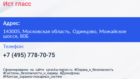Ист-гласс по адресу 143005, Московская область, Одинцово, Можайское шоссе, 80Б в дальнейшем Организация, размещена в следующих категориях: