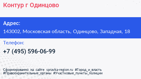Контур, г. Одинцово по адресу 143002, Московская область, Одинцово, Западная, 18 в дальнейшем Организация, размещена в следующих категориях: