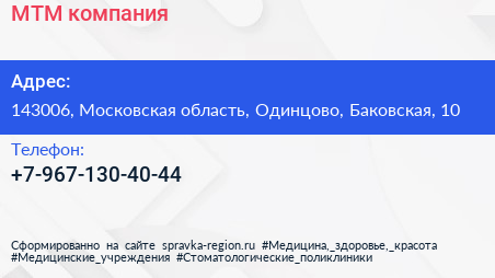 МТМ, компания по адресу 143006, Московская область, Одинцово, Баковская, 10 в дальнейшем Организация, размещена в следующих категориях: