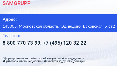 SAMGRUPP по адресу 143005, Московская область, Одинцово, Баковская, 5 ст2 в дальнейшем Организация, размещена в следующих категориях: