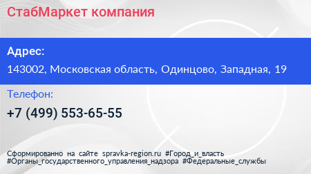 СтабМаркет, компания по адресу 143002, Московская область, Одинцово, Западная, 19 в дальнейшем Организация, размещена в следующих категориях: