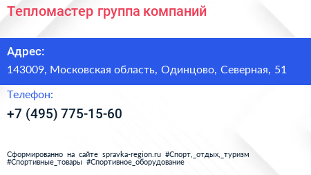 Тепломастер, группа компаний по адресу 143009, Московская область, Одинцово, Северная, 51 в дальнейшем Организация, размещена в следующих категориях:
