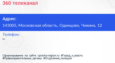 360, телеканал по адресу 143005, Московская область, Одинцово, Чикина, 12 в дальнейшем Организация, размещена в следующих категориях: