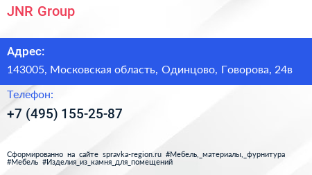 JNR-Group по адресу 143005, Московская область, Одинцово, Говорова, 24в в дальнейшем Организация, размещена в следующих категориях: