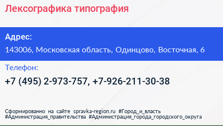Лексографика, типография по адресу 143006, Московская область, Одинцово, Восточная, 6 в дальнейшем Организация, размещена в следующих категориях: