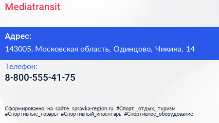 Mediatransit по адресу 143005, Московская область, Одинцово, Чикина, 14 в дальнейшем Организация, размещена в следующих категориях: