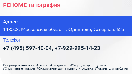 РЕНОМЕ, типография по адресу 143003, Московская область, Одинцово, Северная, 62а в дальнейшем Организация, размещена в следующих категориях: