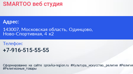 SMARTOO, веб-студия по адресу 143007, Московская область, Одинцово, Ново-Спортивная, 4 к2 в дальнейшем Организация, размещена в следующих категориях: