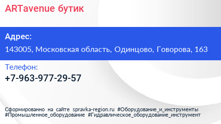 ARTavenue, бутик по адресу 143005, Московская область, Одинцово, Говорова, 163 в дальнейшем Организация, размещена в следующих категориях: