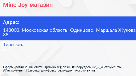 Mine Joy, магазин по адресу 143003, Московская область, Одинцово, Маршала Жукова, 38 в дальнейшем Организация, размещена в следующих категориях:
