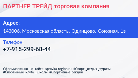 ПАРТНЕР ТРЕЙД, торговая компания по адресу 143006, Московская область, Одинцово, Союзная, 1в в дальнейшем Организация, размещена в следующих категориях: