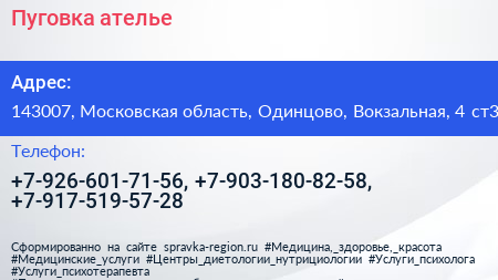 Пуговка, ателье по адресу 143007, Московская область, Одинцово, Вокзальная, 4 ст3 в дальнейшем Организация, размещена в следующих категориях: