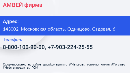 АМВЕЙ, фирма по адресу 143002, Московская область, Одинцово, Садовая, 6 в дальнейшем Организация, размещена в следующих категориях:
