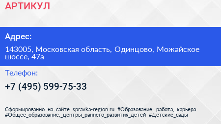 АРТИКУЛ по адресу 143005, Московская область, Одинцово, Можайское шоссе, 47а в дальнейшем Организация, размещена в следующих категориях: