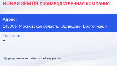 НОВАЯ ЗЕМЛЯ, производственная компания по адресу 143006, Московская область, Одинцово, Восточная, 7 в дальнейшем Организация, размещена в следующих категориях: