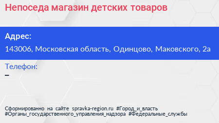 Непоседа, магазин детских товаров по адресу 143006, Московская область, Одинцово, Маковского, 2а в дальнейшем Организация, размещена в следующих категориях: