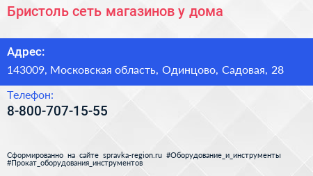 Бристоль, сеть магазинов у дома по адресу 143009, Московская область, Одинцово, Садовая, 28 в дальнейшем Организация, размещена в следующих категориях: