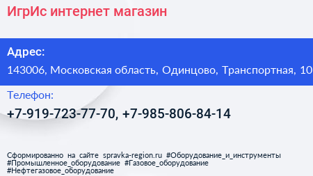 ИгрИс, интернет-магазин по адресу 143006, Московская область, Одинцово, Транспортная, 10 в дальнейшем Организация, размещена в следующих категориях: