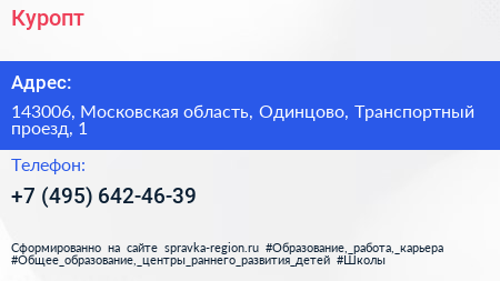Куропт по адресу 143006, Московская область, Одинцово, Транспортный проезд, 1 в дальнейшем Организация, размещена в следующих категориях: