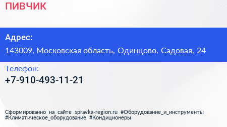 ПИВЧИК по адресу 143009, Московская область, Одинцово, Садовая, 24 в дальнейшем Организация, размещена в следующих категориях: