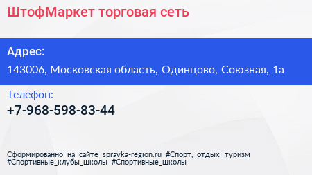 ШтофМаркет, торговая сеть по адресу 143006, Московская область, Одинцово, Союзная, 1а в дальнейшем Организация, размещена в следующих категориях: