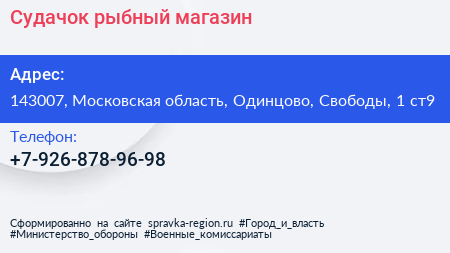 Судачок, рыбный магазин по адресу 143007, Московская область, Одинцово, Свободы, 1 ст9 в дальнейшем Организация, размещена в следующих категориях:
