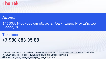 The raki по адресу 143007, Московская область, Одинцово, Можайское шоссе, 38 в дальнейшем Организация, размещена в следующих категориях: