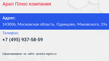 Арал Плюс, компания по адресу 143006, Московская область, Одинцово, Маковского, 19а в дальнейшем Организация, размещена в следующих категориях: