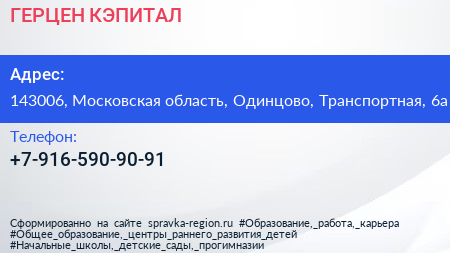 ГЕРЦЕН КЭПИТАЛ по адресу 143006, Московская область, Одинцово, Транспортная, 6а в дальнейшем Организация, размещена в следующих категориях: