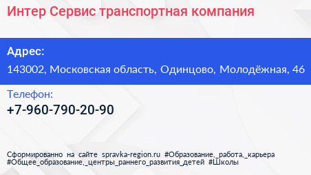 Интер-Сервис, транспортная компания по адресу 143002, Московская область, Одинцово, Молодёжная, 46 в дальнейшем Организация, размещена в следующих категориях: