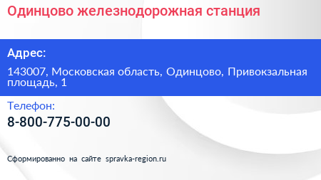 Одинцово, железнодорожная станция по адресу 143007, Московская область, Одинцово, Привокзальная площадь, 1 в дальнейшем Организация, размещена в следующих категориях: