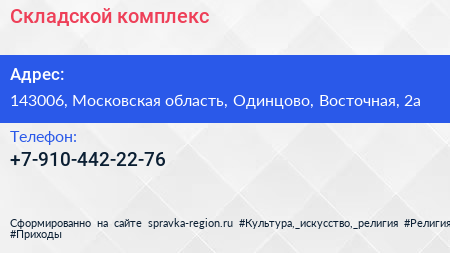 Складской комплекс по адресу 143006, Московская область, Одинцово, Восточная, 2а в дальнейшем Организация, размещена в следующих категориях: