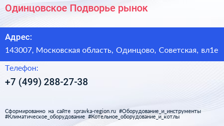Одинцовское Подворье, рынок по адресу 143007, Московская область, Одинцово, Советская, вл1е в дальнейшем Организация, размещена в следующих категориях: