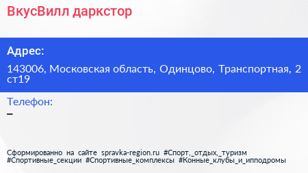 ВкусВилл, даркстор по адресу 143006, Московская область, Одинцово, Транспортная, 2 ст19 в дальнейшем Организация, размещена в следующих категориях: