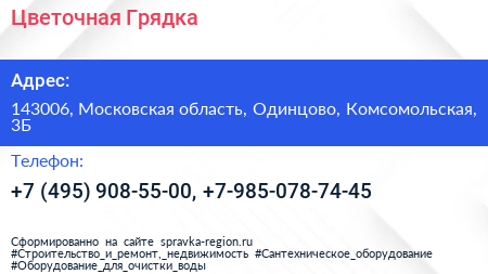 Цветочная Грядка по адресу 143006, Московская область, Одинцово, Комсомольская, 3Б в дальнейшем Организация, размещена в следующих категориях: