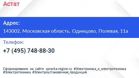 Астат по адресу 143002, Московская область, Одинцово, Полевая, 11а в дальнейшем Организация, размещена в следующих категориях: