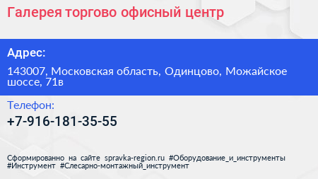 Галерея, торгово-офисный центр по адресу 143007, Московская область, Одинцово, Можайское шоссе, 71в в дальнейшем Организация, размещена в следующих категориях: