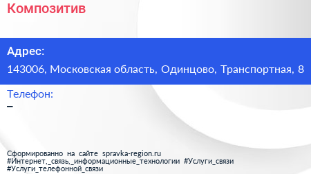 Композитив по адресу 143006, Московская область, Одинцово, Транспортная, 8 в дальнейшем Организация, размещена в следующих категориях: