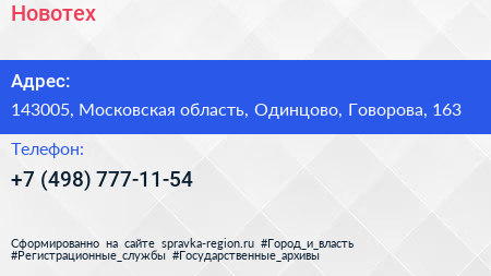 Новотех по адресу 143005, Московская область, Одинцово, Говорова, 163 в дальнейшем Организация, размещена в следующих категориях: