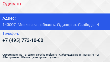 Одисант по адресу 143007, Московская область, Одинцово, Свободы, 4 в дальнейшем Организация, размещена в следующих категориях:
